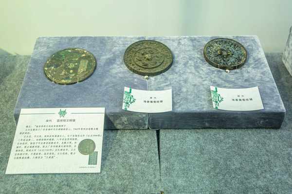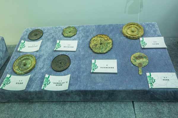 博物馆内的铜镜都是背面朝上展示的,这是因为正面因年深日久已长满绿绣而失去了实际功用,而背面特有的纹饰铭文却深藏着厚重的历史文化,比正面更精彩,也更有故事性。