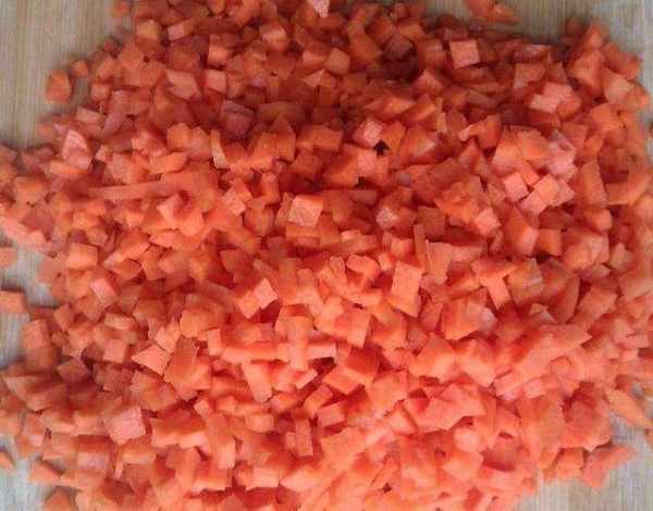 第四步:锅内加入冷水,大火烧开,加入红萝卜和香菇焯水,捞出稍凉后分别剁碎。