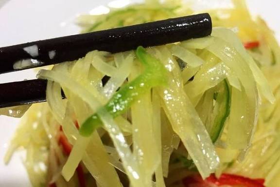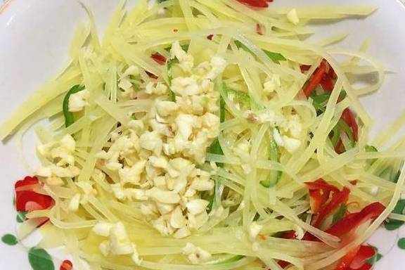 用这种方法做出的土豆丝,香辣爽口,吃起来很清脆,比炒的味道更好吃。