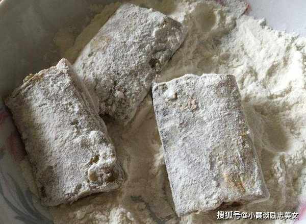 第五步:将腌制好的带鱼放入水中,沾上面粉,均匀地沾上一层薄薄的面粉。