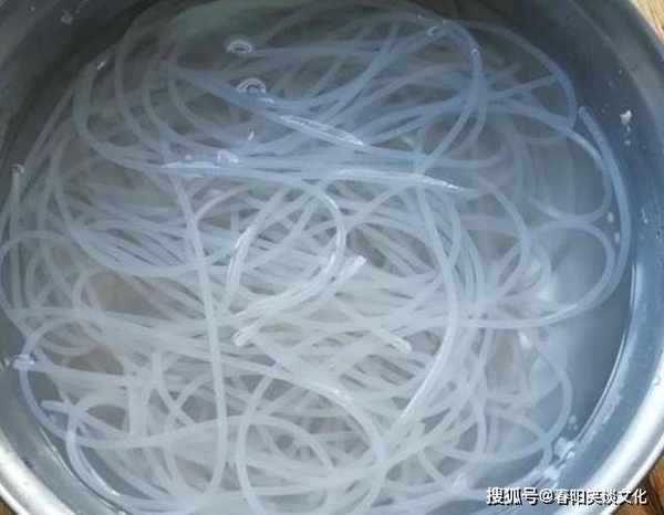 2、切记煮好的粉丝要先用剁好的白醋水泡一下,这样粉丝才不会结块粘在一起。