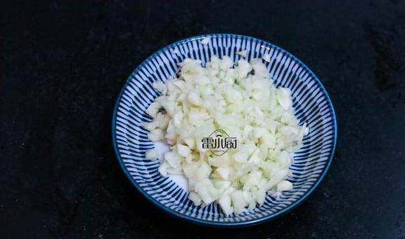 3、大蒜去皮,切碎待用,多切一些大蒜哦。
