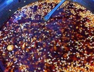 原料:辣椒粉(或者剪碎的干辣椒)、熟芝麻、花生、核桃仁、植物油。
