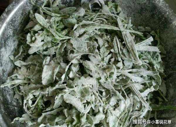 第三步:加入适量面粉,边抹面边搅拌,直到苜蓿均匀地裹上面粉。