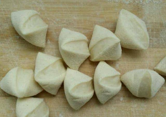 第六步:切成小块,擀成饺子纸,在皮中心放上适量的馅料,揉紧,擀成饺子。