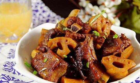 煸炒排骨的时候全程小火。开水要一次加足,中途最好不要再添加水。莲藕和排骨同时炖,这样莲藕更加入味软绵。