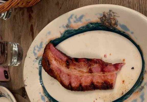 Keens传统的美式装修风格,让整间餐厅里的光线很昏暗,天花板也比较低矮,这种视觉效果增加了一种历史的压抑感。我觉得适合吃货的聚会,如果带着女朋友,往往只能看清面前的肉,却看不清她的脸,这种经历还是不太妙。