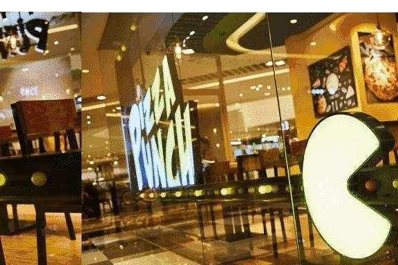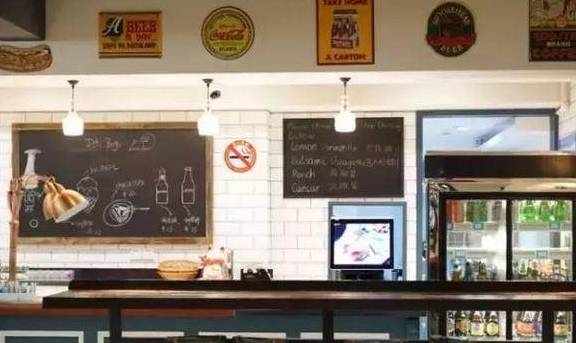 刚进棒约翰店,仿佛潮流酒吧,美式工业风的装潢,昏黄的吊灯、摆成一排的啤酒瓶…新潮又自由的格局!