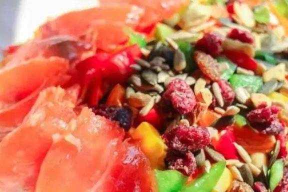 望着窗外的美景,享用一顿健康餐。入味的三文鱼,搭配12-15种蔬菜果干,一碗下肚,管饱身体还没负担~