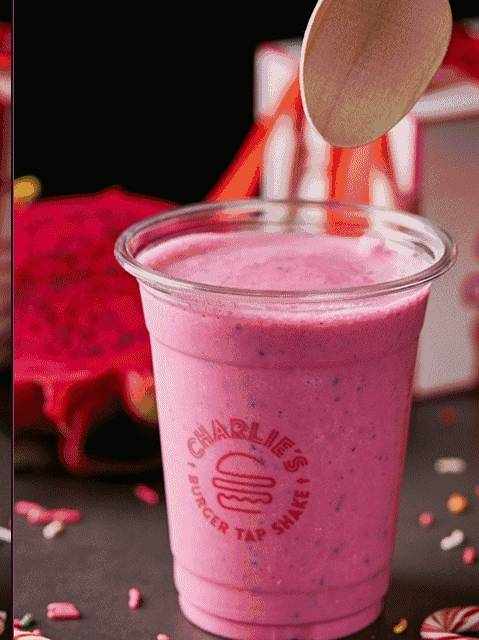 少女心爆棚的火龙果奶昔,用新鲜火龙果榨取,无香精色素,每一杯都是纯天然的味道~插杯不倒的醇厚质地,真的非常良心了,别说吸管了,小资君用勺子铲着吃都没问题!一口下去,火龙果的鲜甜味非常的清爽浓郁。