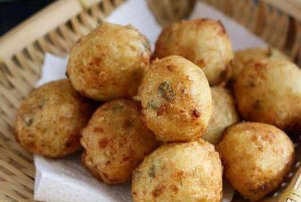 第六步,炸好的丸子放凉,不要混在一起,丸子会变软影响口感。
