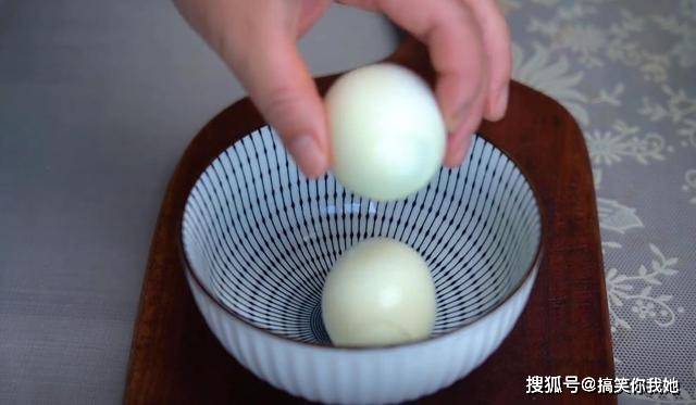 12、接下来制作一个鸡蛋蒜蓉馅,碗中放2个煮熟的鸡蛋。