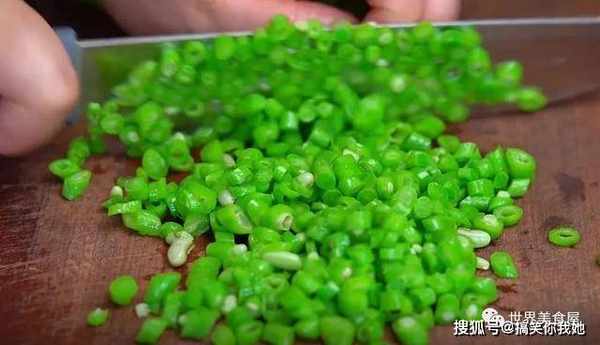 4、接下来将豆角切碎,越碎越好。