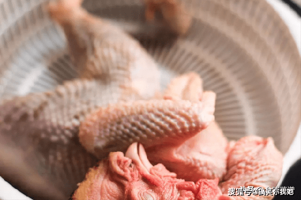 ,鸡块凉水下锅,放入葱姜料酒,大火沸腾几分钟,撇出浮沫,捞出冲洗干净,多冲洗几遍。