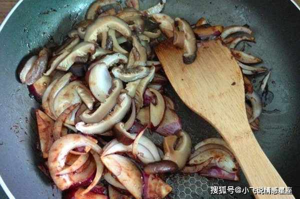 第五步,倒入切碎的香菇翻炒至香菇变软。
