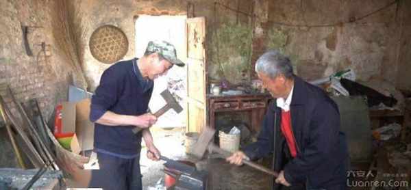 (哥哥)何敬付:12岁就打铁了,17岁就掌钳了,我今年69了。老头打了73岁去世了,我家爷爷也是打到73岁去世,我是第三代了。