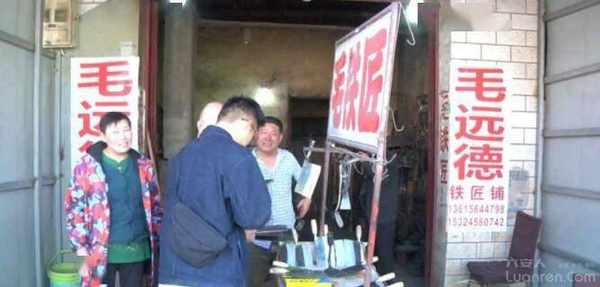 何敬兰丈夫 毛远德:把钢夹在当中,用火把它粘在一起以后打样式以后蘸火、安刀把就成功了。蘸火最主要的。