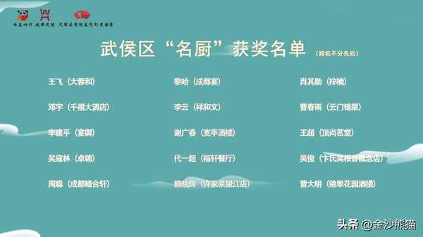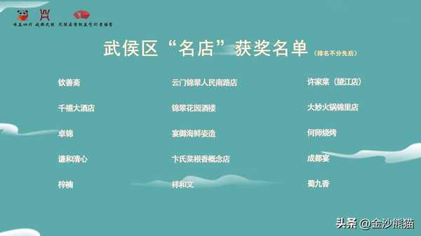 附录:武侯区“拾好吃” “名店” “名厨”获奖名单