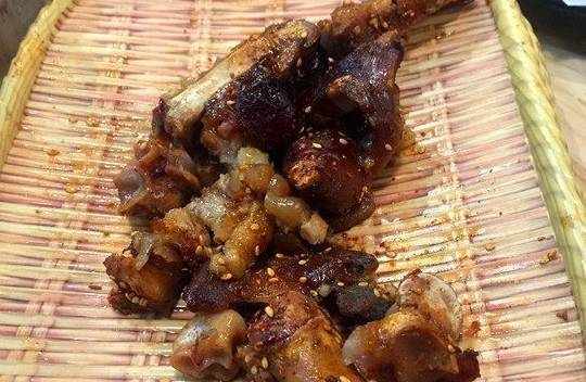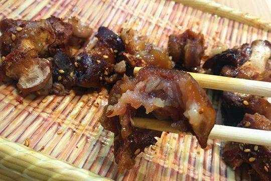 一般烧烤炸串的豆皮小兔儿一定会点,他们家也不例外,虽然口感挺好,但调味料撒得非常不均匀,仅上面两串有滋味,其他的只剩下豆香和烟熏味儿了,建议老板下次多花些耐心吧。