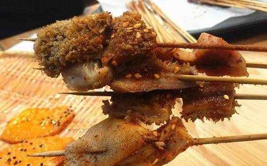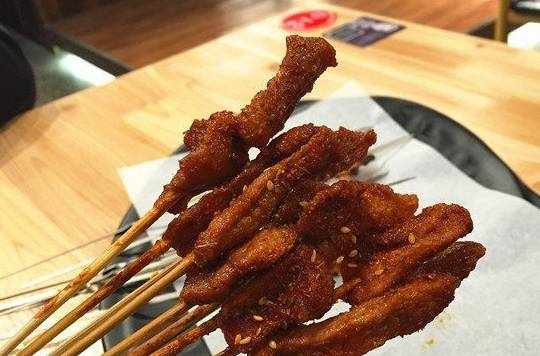 老中街炸串?牛肉的?反正我是没吃出来,肉是“面的”,关键嚼着也不像肉啊。金钱肚劲道是劲道,就是味儿没进去,不推荐。
