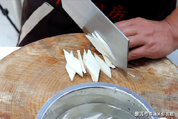 一小把枸杞用清水泡上;生姜切成薄片。瘦肉一小块,也切成均匀薄片。