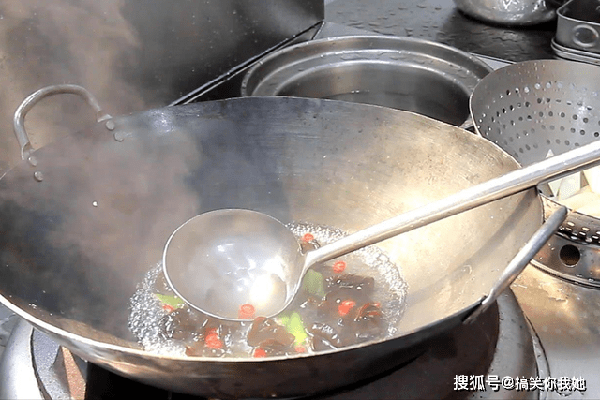 然后把锅中的原料和汤汁