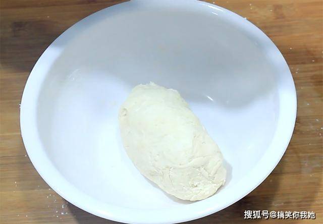 准备小麦面粉200克,放入酵母3克,白糖10克促进酵母发酵,用清水和面多次少量的添加,把面絮揉在一起,揉成光滑的面团,用盘子盖住,常温发酵1个小时。