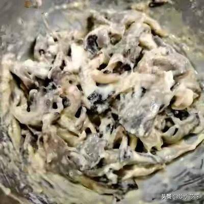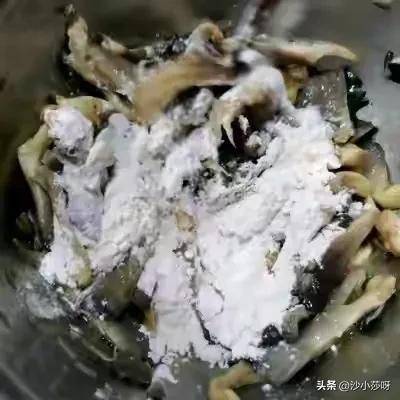 9.撒面粉后,抓拌抓拌使其全部裹上面粉。