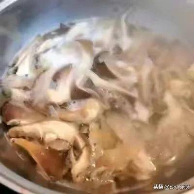 4.蘑菇都软后熄火,把蘑菇盛进装凉水的盆里。