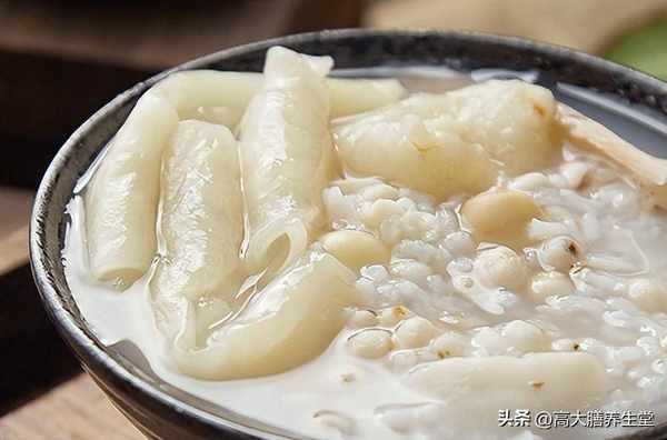 4.砂锅中加入适量清水,放入百合、芡实、莲子、山药、薏米、大米,大火煮开后转小火炖煮 30 分钟。