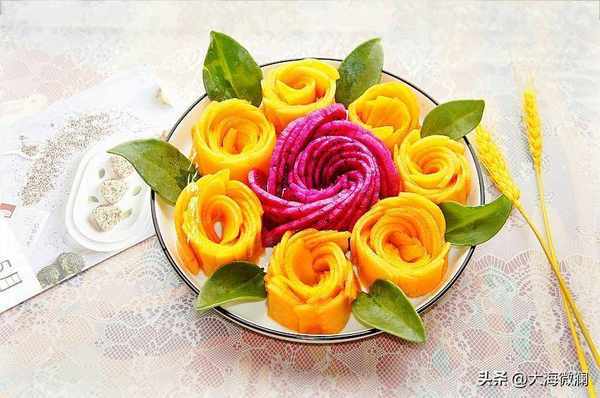 用两种色彩艳丽水果搭配成造型美观的拼盘,放到过年的餐桌上特别喜庆,幸福像花一样团团圆圆,喜庆!食材芒果、火龙果各1个,水果去皮切片,卷成玫瑰花,用穿心莲叶子搭配一下就好了,简单好做,有颜值有卖相寓意好!解腻又开胃,别说孩子爱吃,全家人都喜欢。