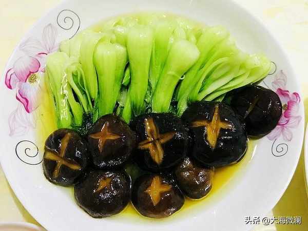 油菜谐音有财,过年图的就是个吉利,这道菜颜色碧绿,口感脆嫩,爽口开胃,营养丰富。做法也很简单,油菜焯水后码入盘中,撒上蒜末和小米椒末,淋入两勺生抽,1匙香油,锅中加入两勺油,油热淋在蒜末上,香菇焯水后马仔上边就OK了!