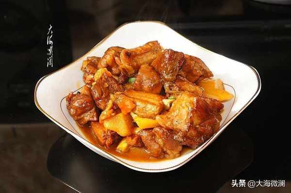 一节节的排骨,寓意新的一年好日子节节升高。做法:排骨焯水,起油锅加入白糖炒糖色,加入葱姜、花椒大料翻炒,加入料酒、老抽、生抽翻炒均匀,加入适量的开水末过排骨略多一些,大火烧开,中火炖至排骨熟,加入土豆块,继续炖约10分钟左右,出锅装盘。