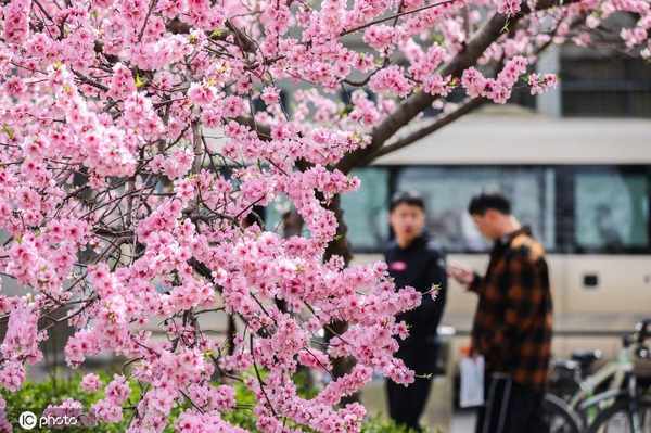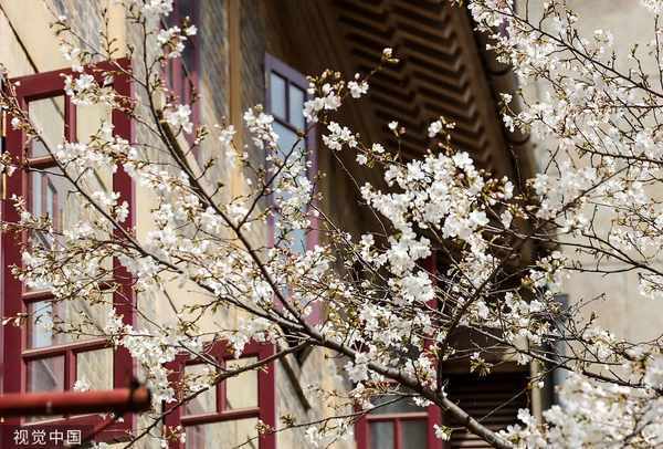 2023年3月12日,武汉大学樱花陆续进入花期,校园花香四溢。