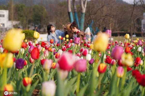 2023年3月13日,浙江杭州,浙江农林大学东湖校区的花卉教学实践基地里,数千株不同品种郁金香陆续开放,犹如一幅美丽的大图画,成为校园里的网红打卡点,吸引不少师生来赏花踏春、摄影留念,感受这美丽的风景和迷人的春光。