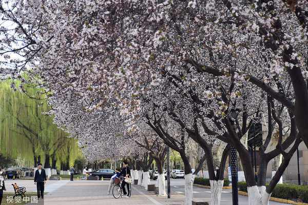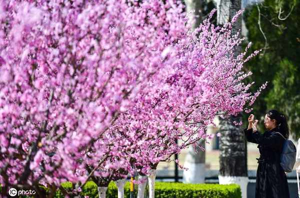 2023年3月10日,山东济南,泉城最高气温达到29℃,在山东师范大学千佛山校区校园里,数百株红叶李、美人梅、玉兰花盛开,形成长约百米的高校“花街”,给宁静的校园更是增添几分春色,被师生誉为“佛山映翠”,是山师八大景观之一。