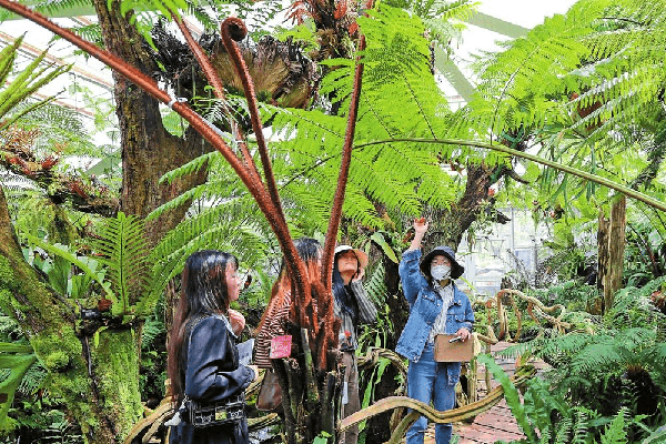 游客参观“扶荔宫”蕨类植物馆