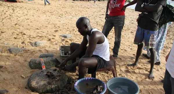 在当地还有着一种叫做“杰布静”的美食,是一道传统美味。在我们看来,更加愿意称呼它为鱼肉拌饭。塞内加尔人的大部分人是穆斯林,生活中他们吃牛羊肉,不吃鳝类、螃蟹、猪肉等他们认为丑陋的食物,这里的羊肉很便宜,每斤售价只有10元。若是遇到家中有贵客,他们会以烤全羊的方式来招待客人。