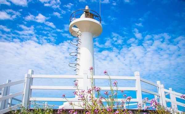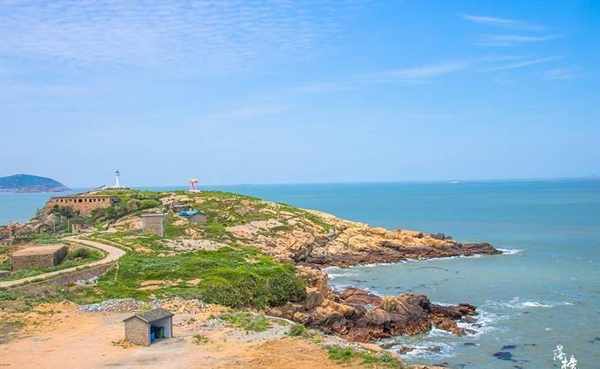 从高处俯视,整个岛屿就像一片张开的梧桐叶。和舟山很多小岛一样,这里也有一座灯塔。白色的灯塔孤零零地矗立在海岸边,仿佛在等待某种约定。
