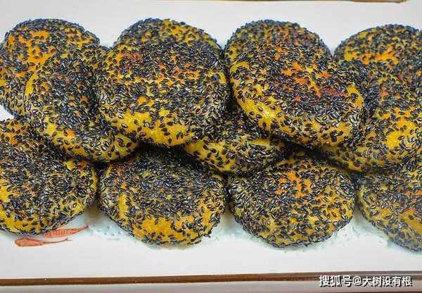 4.取适量面团,在手心处团成圆球,放入装有黑芝麻的盒中,让其均匀裹上黑芝麻,把圆球压扁红薯饼的生坯就做好了。