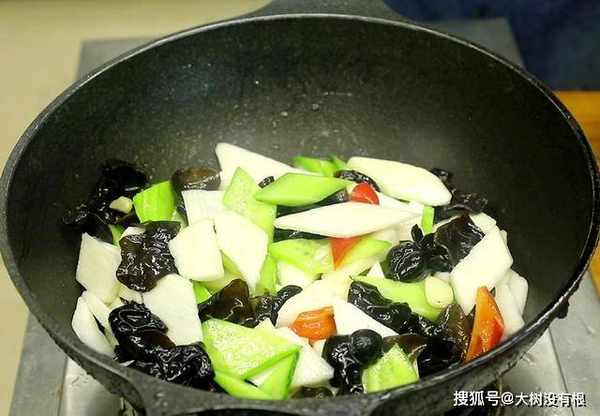 4.好了,这道清淡有营养的木耳炒山药就做好了。