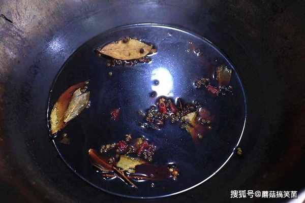 起锅烧热,直接放入准备好的香料,开小火煸炒出香味,一定要小火、火大容易糊,闻到浓郁的料香味以后加入生抽20克、香醋20克,再倒入适量的清水、放入几粒冰糖、一点老抽调色,大火烧开以后转小火熬制3分钟,熬出料汁的香味,这样咱们的腌料就熬好了,放在一边晾凉备用。