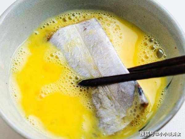 第六步:在锅中倒入少许煎炸油。煮沸后加入裹有蛋液的毛尾,用中小火慢慢煎至金黄色。然后取出控油装盘即可。