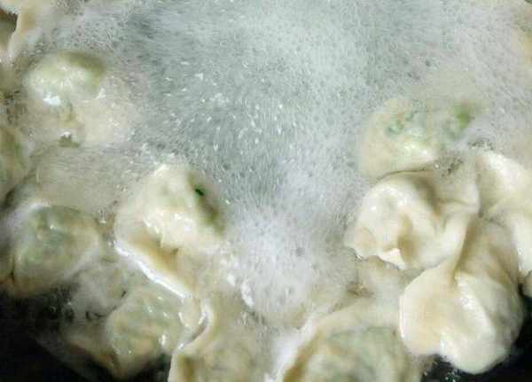 第六步:锅中倒入冷水,大火烧开,下入饺子,慢慢分开,再次沸腾后,揭开盖子继续煮至饺子膨胀即可食用。.