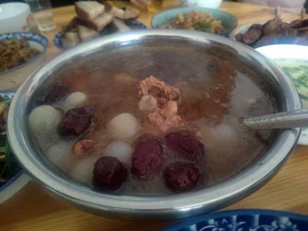 土猪的排骨,加上桂圆肉、红枣、板栗一起炖出来的汤,不仅营养丰富,味道也非常鲜美,清甜可口不油腻,好喜欢!