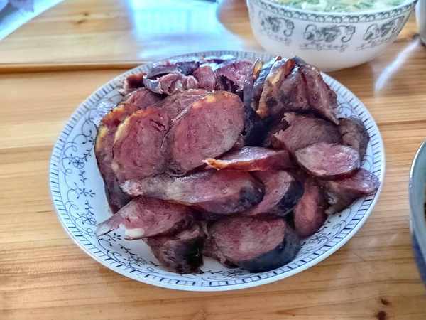 江西这边的香肠有两种,一种是原味的,还有一种是麻辣的,两种都很受欢迎。香肠只要用热水简单清洗,上锅蒸熟,再切片摆盘就可以了,非常方便,快过年的时候,家家户户都会备上一些。