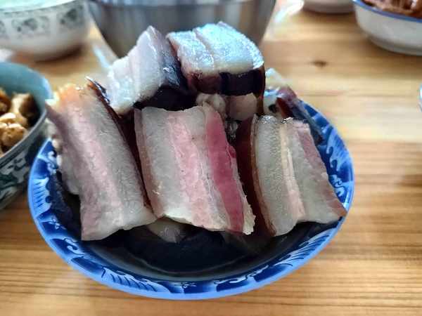 过年期间,家家户户待客都会有这道蒸腊肉,熏好的腊五花肉,先和其它腊味一起煮熟,切成厚片,再蒸10分钟左右,就可以上桌了,吃起来香而不腻,回味无穷!