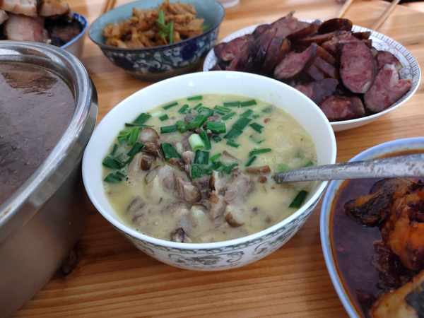 江西的冬天非常冷,所以过年待客的时候,经常会出现狗肉汤、羊肉汤等,有驱寒的作用。