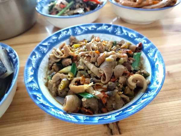 江西人无辣不欢,所以各种香辣开胃的小炒,也是必不可少的。牛肚的口感非常好,加入蒜苗和干辣椒一起爆炒,香辣爽脆,这菜下酒下饭都极好,十分受欢迎。
