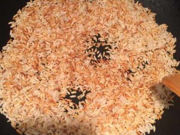 第四步:一边炒一边搅拌,直到米饭呈金黄色,大约15-20分钟。